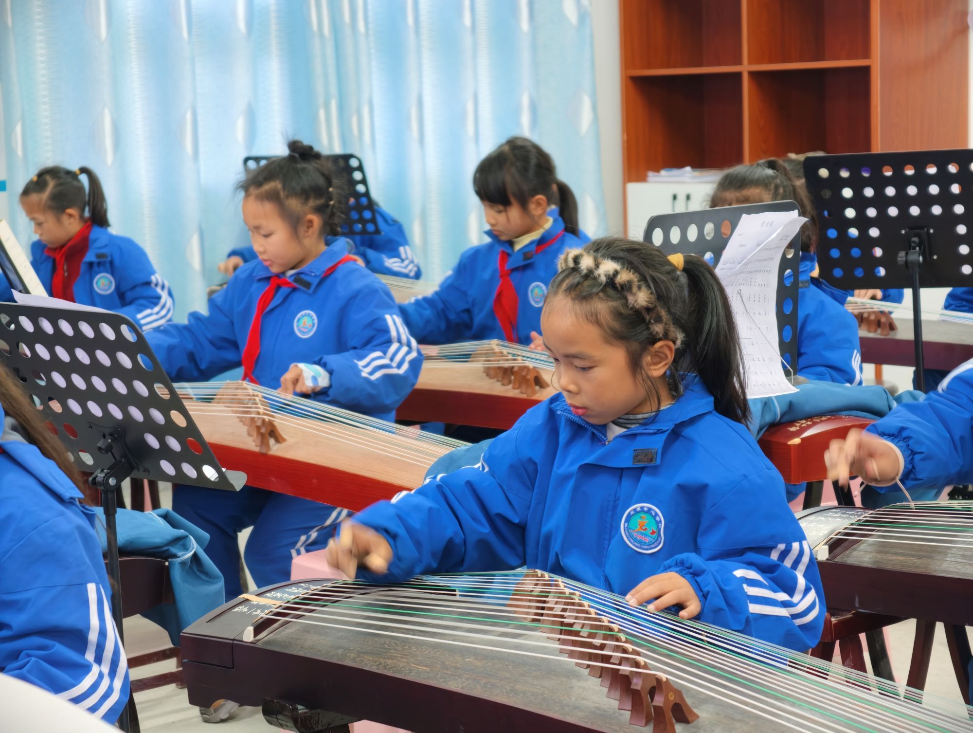 “我现在会弹《宝宝要睡觉》《精忠报国》,还学会了很多精彩的曲目。”麻江县宣威中心学校四年级学生罗雨嘉说,学了古筝之后,获得很多展示自己的机会。