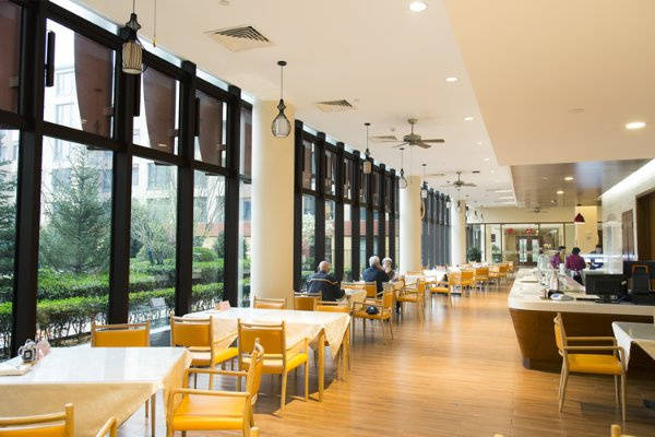 饮食服务坚守“安全、营养、美味”原则,从食材采购源头严格把控,确保绿色环保、安全新鲜。膳食专家结合老年人身体特点与营养需求,定制专属营养食谱,精心改良川鲁粤等中华美食,融合中西烹饪方式,每日提供不少于25种食品种类,兼顾口感与营养。针对特殊身体状况的长辈,可提供定制化餐食,适配糖尿病、高血压、吞咽困难等需求。餐饮空间丰富多样,精品餐厅、自助餐厅、雅致包间满足不同用餐场景,长辈可享受集体用餐的热闹,也可与家人在包间共度温馨时光,让每一餐都充满仪式感。