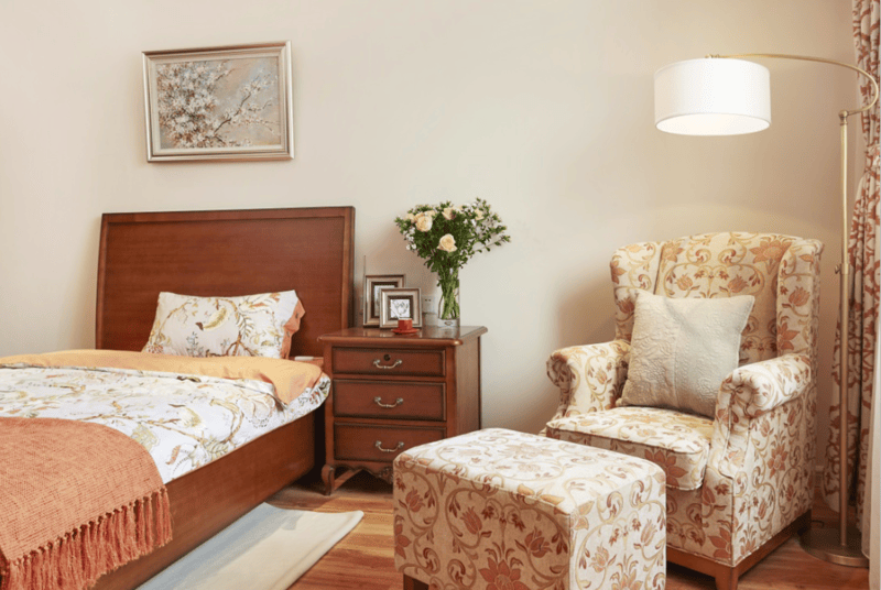 中心特邀日本养老机构专业设计院五感纳得打造适老建筑系统,从空间布局到家具配置都极具匠心。房间配备进口platz双马达电动护理床、紧急呼叫系统、微子空调(无风无声,四季恒温18-22℃),独立电视、冰箱等生活设施一应俱全。适老化家具采用圆滑桌角防止碰伤,洗面台盆下方可放置轮椅,无障碍助浴室、绿化中庭、疗愈花园等空间,兼顾安全性与舒适性,让长辈享受居家般的温暖。